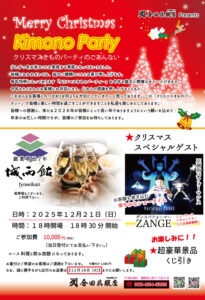 毎年開催させていただいております【クリスマスきものパーティー】今年も盛り上がってまいりたいと思います。沢山のお客様のご参加をお待ちしております。